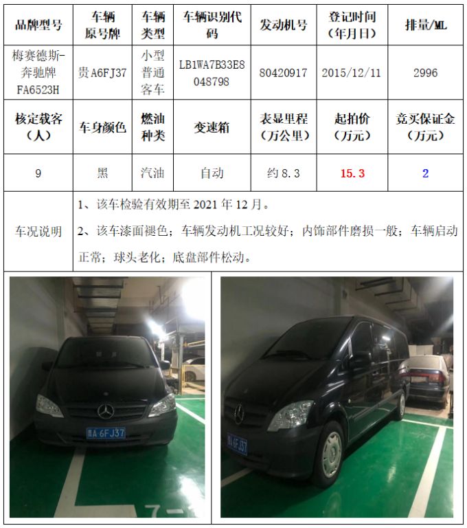 拍品編號(hào)2:梅賽德斯-奔馳牌FA6523H小型普通客車(chē)(原號(hào)牌貴A6FJ37)一輛