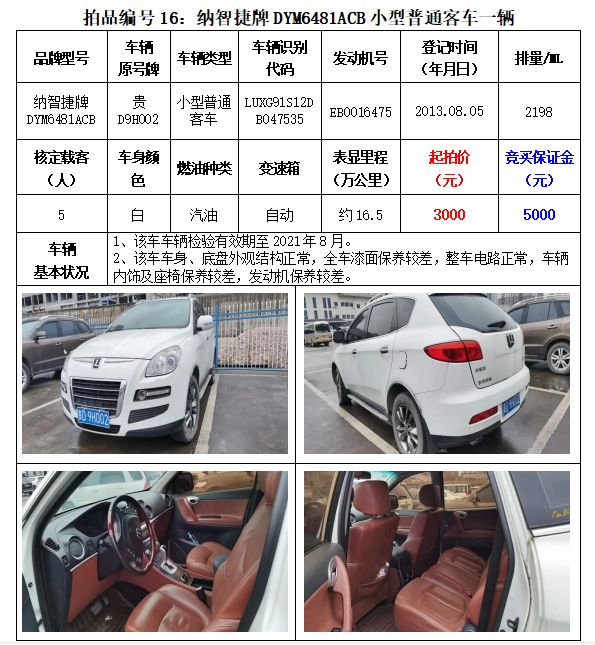 雅閣牌、三菱牌、起亞牌、勝達(dá)、昊銳牌、尼桑牌、思威牌、獵豹牌、吉普、別克牌、一汽牌、納智捷牌、北京現(xiàn)代牌機(jī)動(dòng)車(chē),共計(jì)18輛。