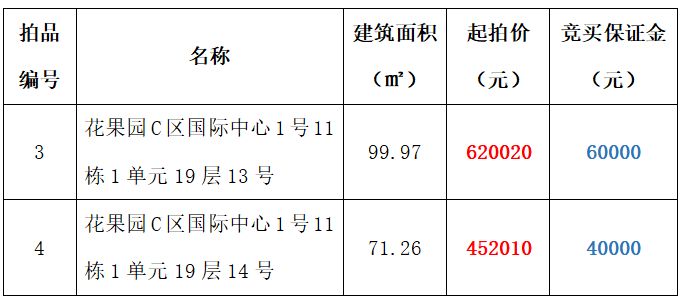 【已結(jié)束】花果園國(guó)際中心一號(hào)樓兩處拍賣