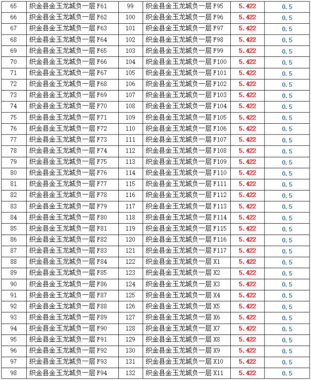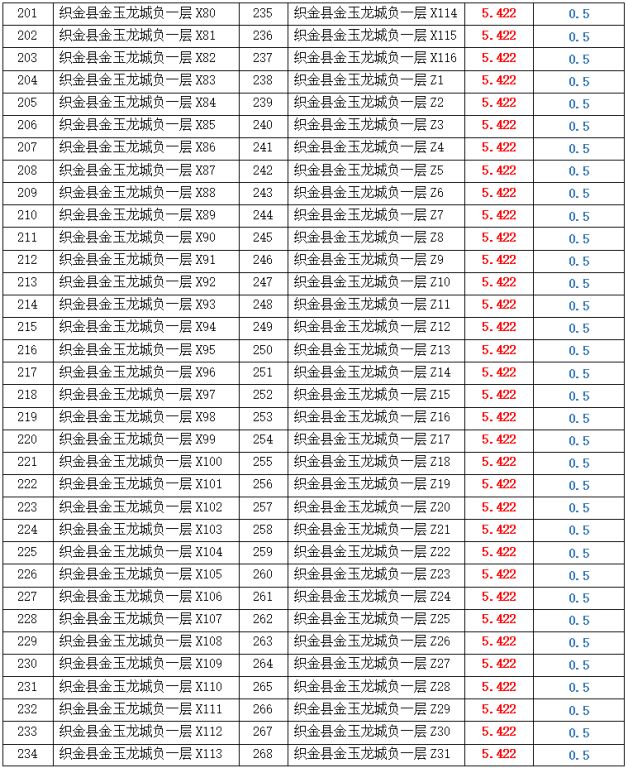 拍品編號(hào)5-276號(hào):畢節(jié)市織金縣金玉龍城負(fù)一層停車位