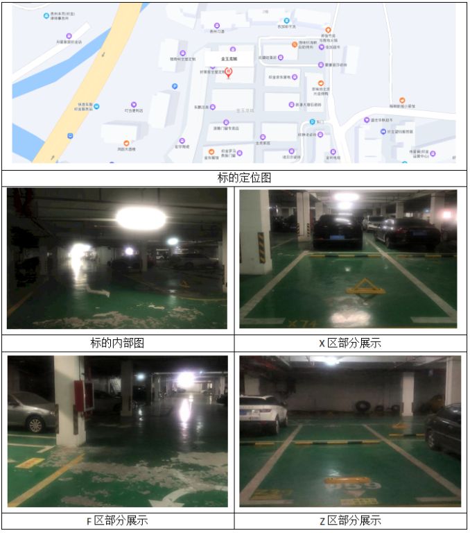 該批標(biāo)的位于織金縣金玉龍城負(fù)一層,共有車位272個(gè),停車位地面刷地面漆、墻面刷瓷粉及乳膠席、車位線、部分安裝車輪擋輪器。