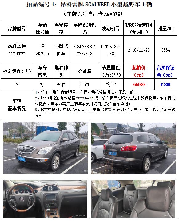 受委托,我公司定于2023年3月2日(星期四)下午14:00時(shí),在貴陽(yáng)市南明區(qū)遵義路65號(hào)貴州省公共資源交易中心多功能廳公開(kāi)拍賣(mài)以下標(biāo)的: