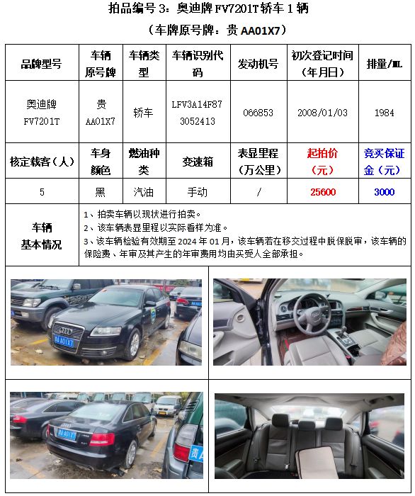 5、繳納競(jìng)買(mǎi)保證金的截止時(shí)間為:2023年3月2日中午12:00止,競(jìng)買(mǎi)保證金到賬情況以到貴州春秋拍賣(mài)有限責(zé)任公司賬戶(hù)顯示為準(zhǔn)。