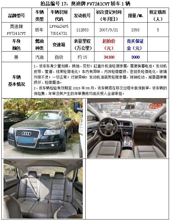 以下車(chē)輛拍賣(mài)時(shí)間為2023年3月2日14:20開(kāi)始