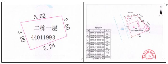 4、新橋鎮(zhèn)新橋居委會房地產(chǎn)(原新橋信用社),證載總建筑面積:332.79㎡實測建總筑面積:357.94㎡;證載土地使用權面積:443.24㎡,實測土地使用權面積:443.24㎡
