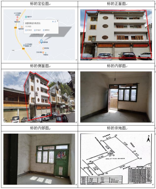標(biāo)的坐落于貴州省興仁市百德鎮(zhèn)街上,房屋總層數(shù)4,所在層數(shù):1-4層,共有宗地面積570.6㎡,房屋建筑面積:346.95㎡,房屋結(jié)構(gòu):混合結(jié)構(gòu),房屋產(chǎn)權(quán)證號:黔(2023)興仁市不動產(chǎn)權(quán)第0005286號,權(quán)利類型:國有建設(shè)用地使用權(quán)/房屋所有權(quán),權(quán)利性質(zhì):出讓/自建房,用途:商務(wù)金融用地/辦公,使用期限:2014年3月31日起2052年9月28日止。