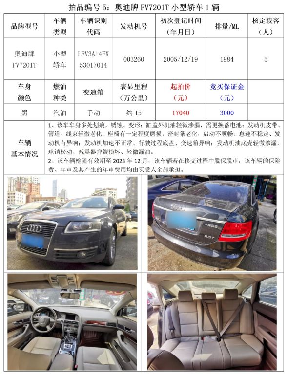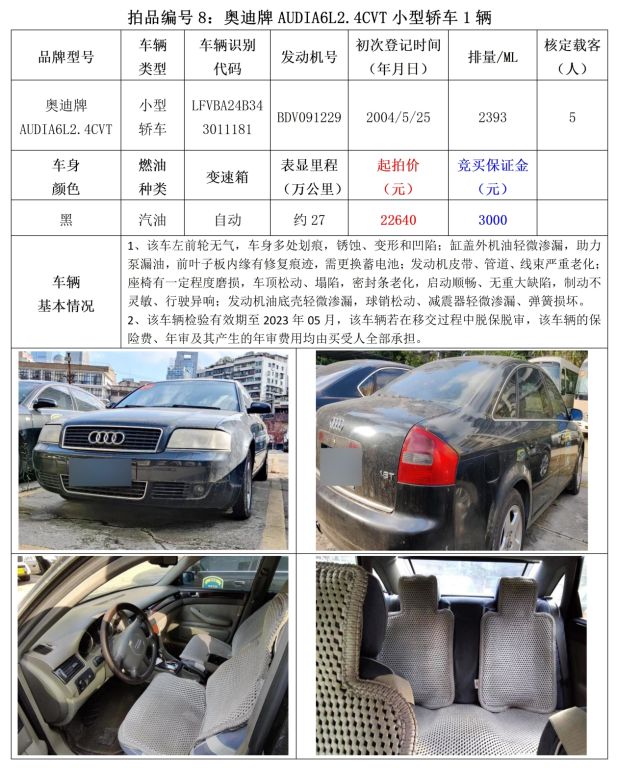5、繳納競(jìng)買(mǎi)保證金的截止時(shí)間為:2023年5月31日中午12:00止,競(jìng)買(mǎi)保證金到賬情況以到貴州春秋拍賣(mài)有限責(zé)任公司賬戶顯示為準(zhǔn)。