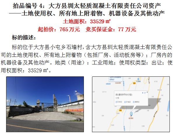 4、大方縣圳太輕質(zhì)混凝土有限公司資產(chǎn)(土地面積為33529);