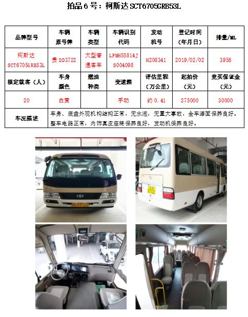 受銅仁北站客運(yùn)有限公司委托,本公司定于2020年11月27日(星期五)下午14:30時(shí),在銅仁市碧江區(qū)川硐教育園區(qū)誠信路銅仁市公共資源交易中心開標(biāo)六室(拍賣大廳)公開拍賣:長城哈弗(越野車4輛)、路虎發(fā)現(xiàn)(越野車1輛)、柯斯達(dá)(大型普通客車1輛)共計(jì)6輛車。
