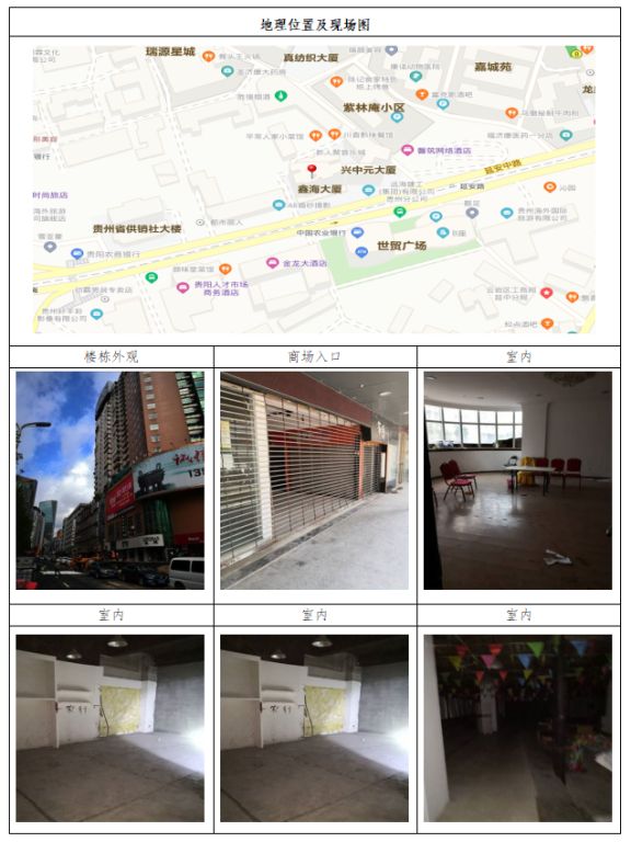 拍品編號2:貴陽市云巖區(qū)延安中路81號鑫海大廈1層35、36、48、49號及2層16、17、50號