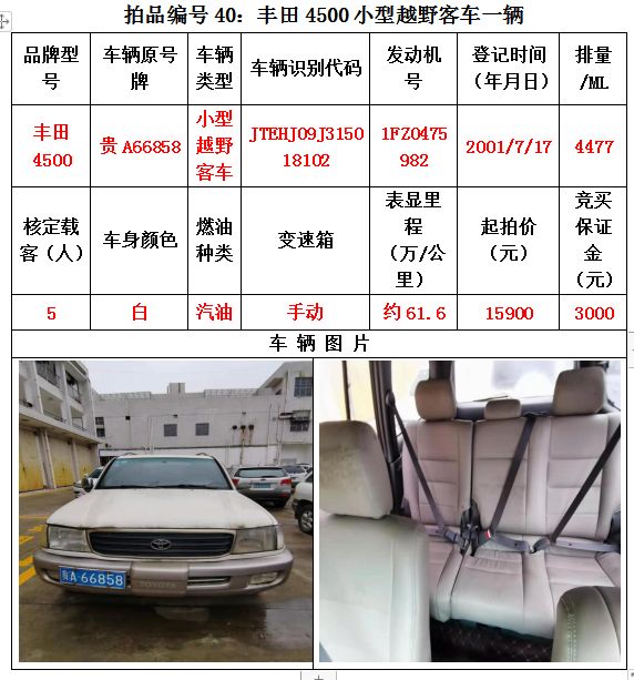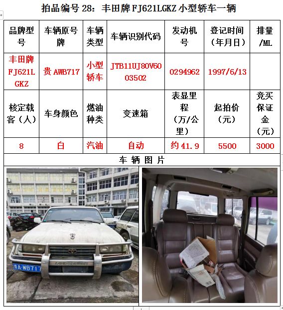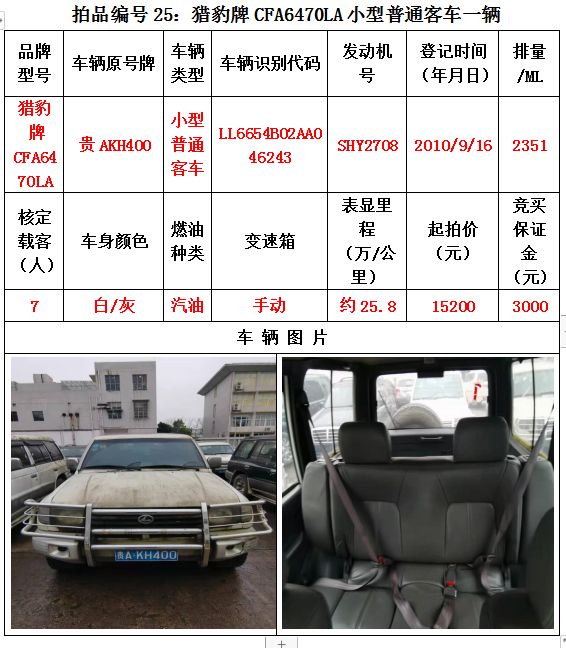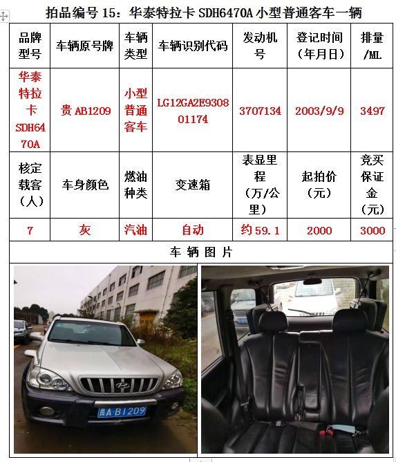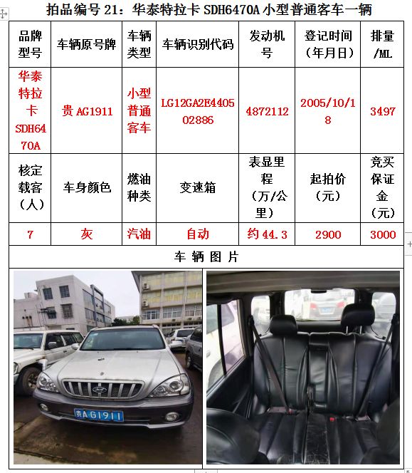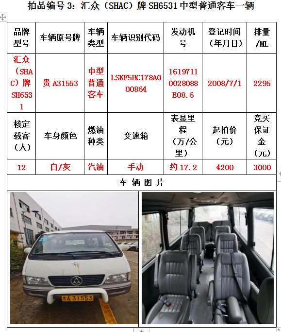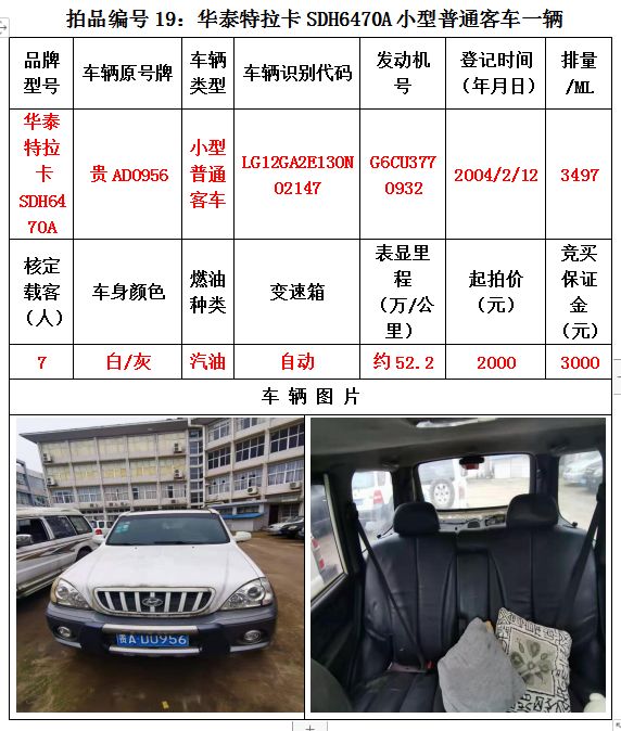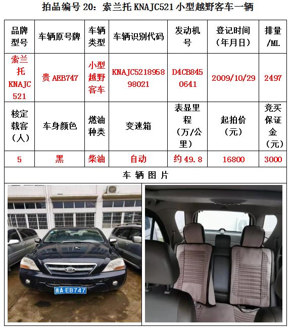 受委托,我公司定于2020年12月25日(星期五)下午14:30在貴陽(yáng)市云巖區(qū)浣紗路19號(hào)泰合爾酒店三樓會(huì)議室公開(kāi)拍賣以下標(biāo)的: