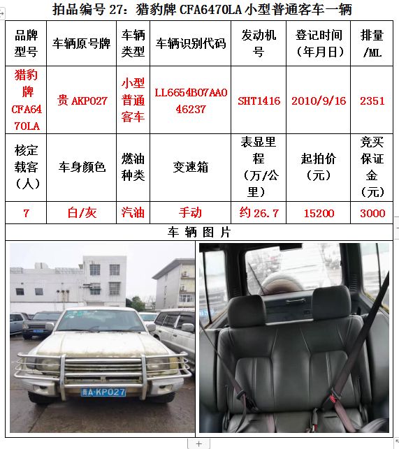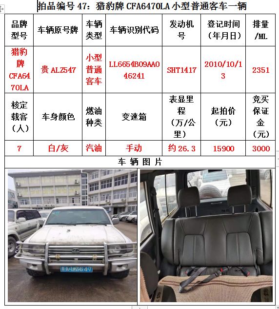 路虎牌、雙龍雷斯特牌、索蘭托牌、三菱帕杰羅牌、華泰特拉卡牌、華泰圣達(dá)菲牌、獵豹牌、萬(wàn)里牌、豐田陸地巡洋艦吉普牌、寶龍牌、尼桑牌、蒙迪歐牌、凌志牌等共計(jì)47輛車