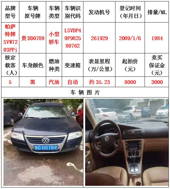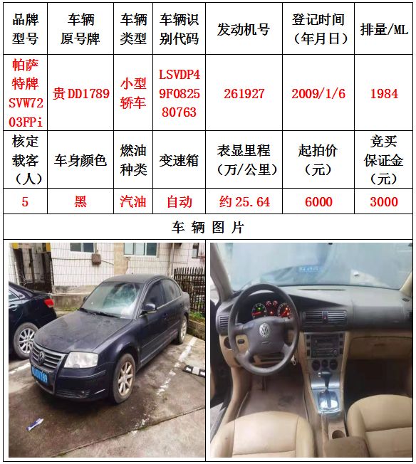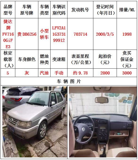 本次拍賣會的拍賣標(biāo)的其中5輛車,分別為邁騰牌FV7187T小型轎車一輛、豐田牌GTM7200GB-NAV1小型轎車一輛、捷達(dá)牌FV7160GiF E3小型轎車一輛、帕薩特牌SVW7203FPi小型轎車一輛、帕薩特牌SVW7203FPi小型轎車一輛,為打包整體拍賣,不作拆分,整體起拍價:42400元,且只對標(biāo)的現(xiàn)狀進(jìn)行拍賣,不作任何質(zhì)量擔(dān)保。