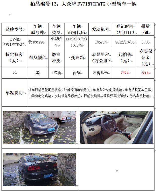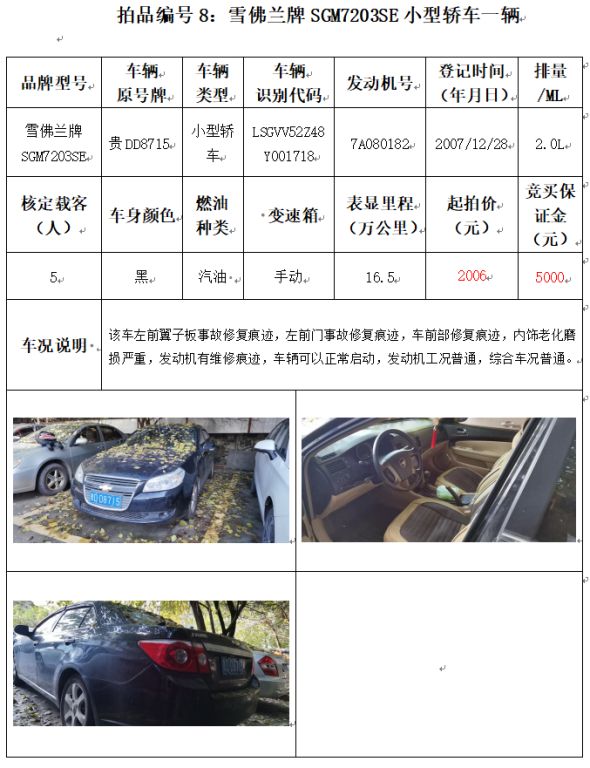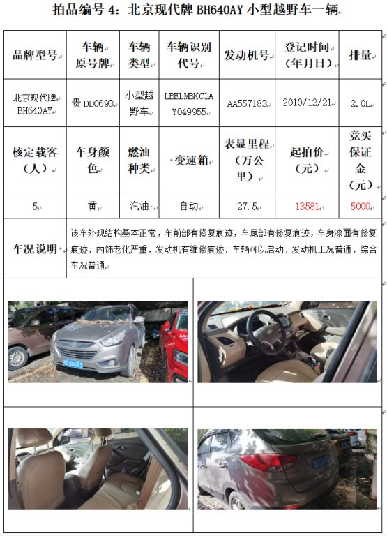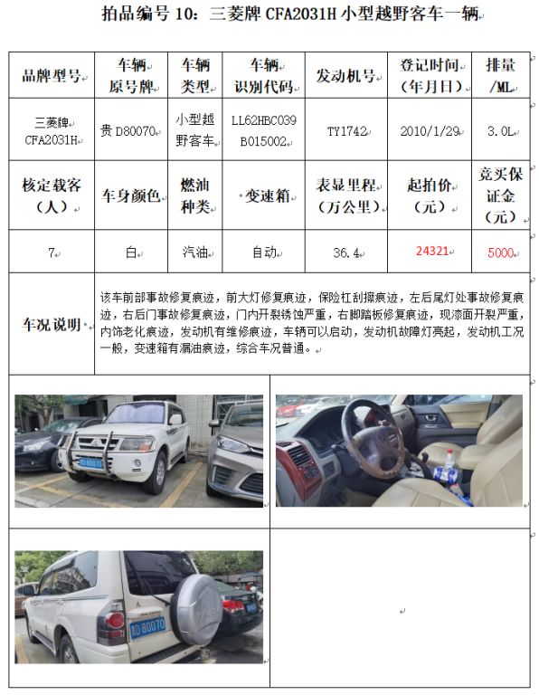受委托,本公司定于2021年12月10日(星期五)下午14:00時(shí),在銅仁市碧江區(qū)川硐教育園區(qū)誠(chéng)信路銅仁市公共資源交易中心開(kāi)標(biāo)六室(拍賣(mài)大廳)公開(kāi)拍賣(mài)以下車(chē)輛: