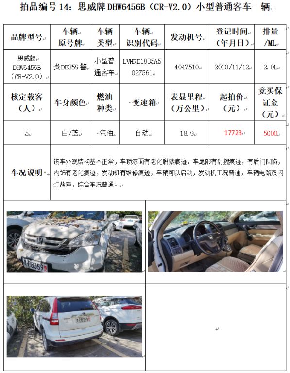 【已結(jié)束】貴州春秋16輛機(jī)動(dòng)車(chē)拍賣(mài)公告