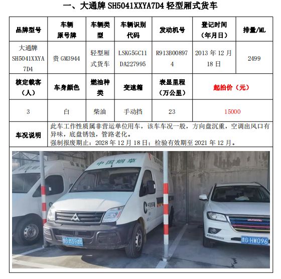 貴州省煙草公司安順市公司車輛拍賣公告