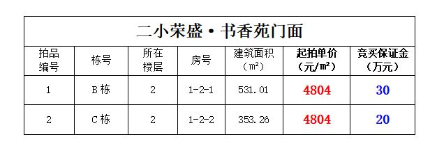 拍品編號(hào)1-2號(hào):二小榮盛·書香苑門面(共計(jì)2間)