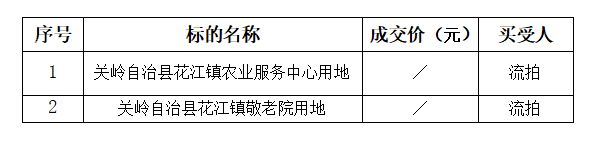 受委托,我公司于2022年4月22日(星期五)上午11:00在關(guān)嶺布依族苗族自治縣頂云天書酒店旁城投集團(tuán)二樓會(huì)議室面向社會(huì)公開拍賣關(guān)嶺自治縣花江鎮(zhèn)農(nóng)業(yè)服務(wù)中心用地和關(guān)嶺自治縣花江鎮(zhèn)敬老院用地,其結(jié)果如下: