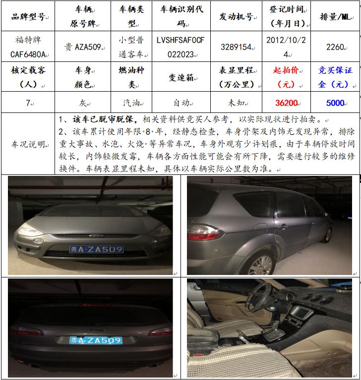 拍品編號(hào)2:福特牌CAF6480A小型普通客車一輛