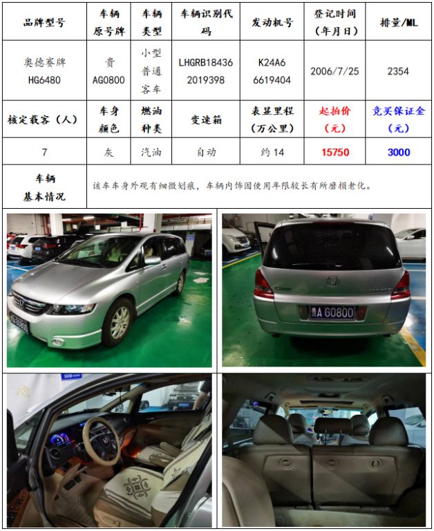 拍品編號(hào)3:奧德賽牌HG6480小型普通客車一輛