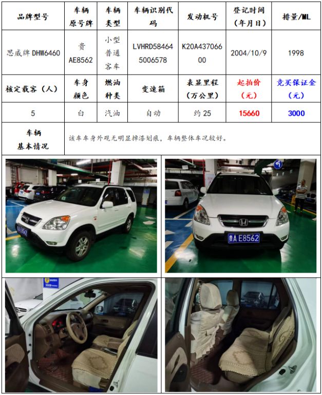 拍品編號(hào)4:思威牌DHW6460小型普通客車一輛