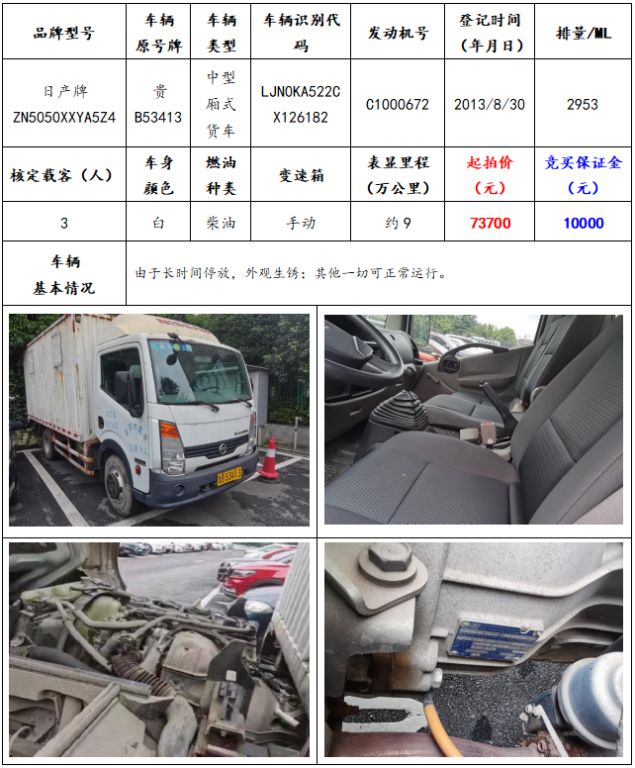 拍品編號(hào)6:日產(chǎn)牌ZN5050XXYA5Z4中型廂式貨車一輛