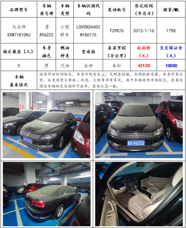 拍品編號(hào)5:大眾牌SVW71810HJ小型轎車一輛