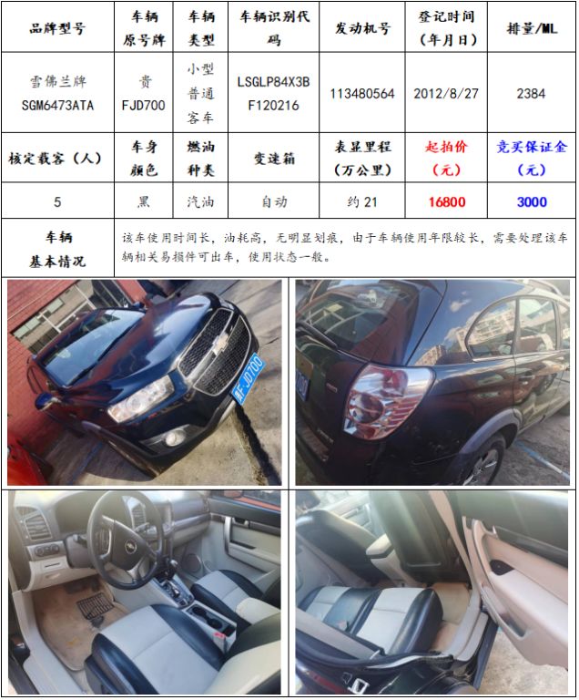 拍品編號(hào)10:雪佛蘭牌SGM6473ATA小型普通客車一輛