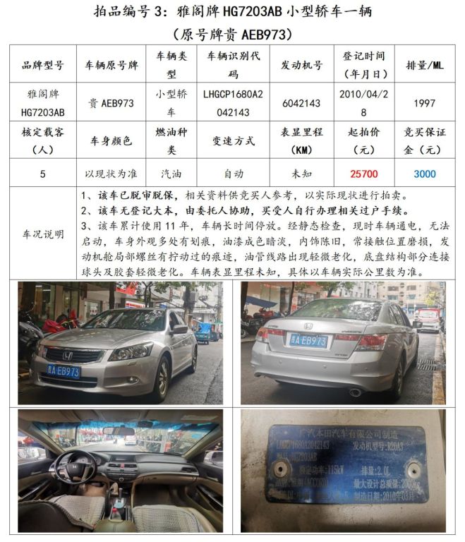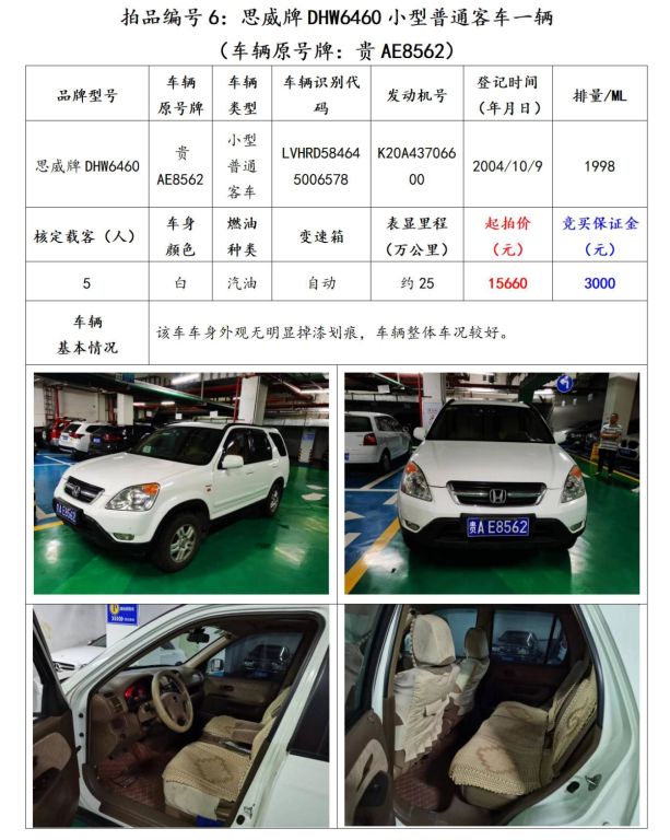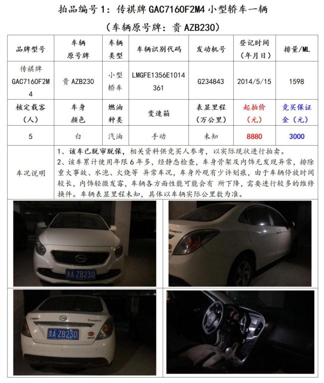 【已結(jié)束】貴陽市6輛機(jī)動車拍賣公告