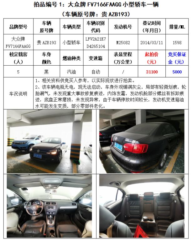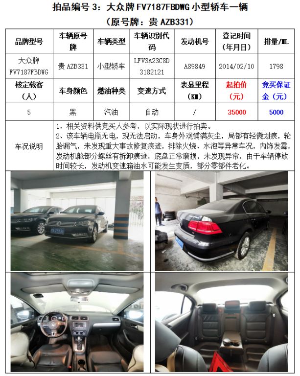 【01月19日】三輛機(jī)動(dòng)車拍賣