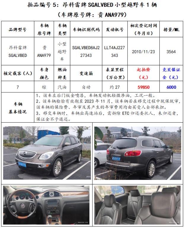 拍品編號(hào)5:昂科雷牌SGALVBED小型越野車(chē)1輛(車(chē)牌原號(hào)牌:貴ANA979);