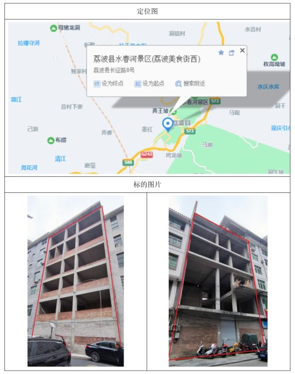 標(biāo)的位于玉屏鎮(zhèn)民族路2號(hào),房屋建筑面積:907.75㎡,產(chǎn)權(quán)完整,2011年建成,房屋總層數(shù)為14層,標(biāo)的所在層數(shù)為1層。不動(dòng)產(chǎn)權(quán)證號(hào):黔房權(quán)證荔波縣字第201300496號(hào),土地所有權(quán)類型:出讓;土地所有權(quán)規(guī)劃用途:商業(yè)用房,建筑結(jié)構(gòu)為鋼混結(jié)構(gòu)。