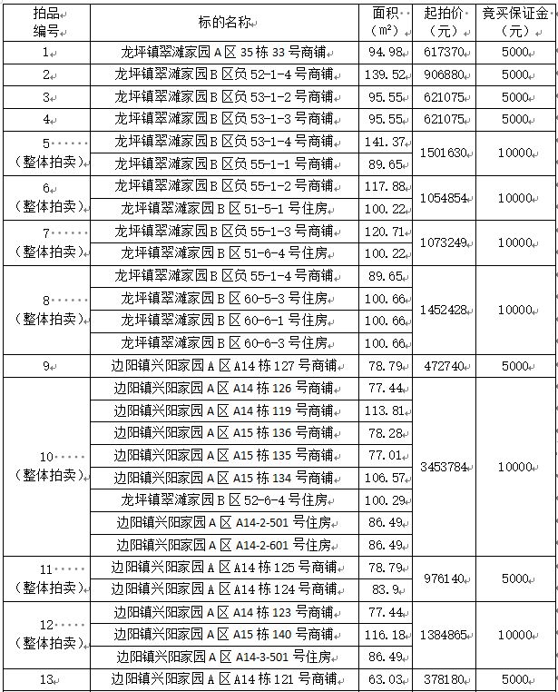 【已結(jié)束】龍坪鎮(zhèn)翠灘家園A區(qū)B區(qū)、邊陽鎮(zhèn)興陽家園A區(qū)B區(qū)、龍坪鎮(zhèn)玉都家園商業(yè)樓部分商鋪及住房拍賣公告