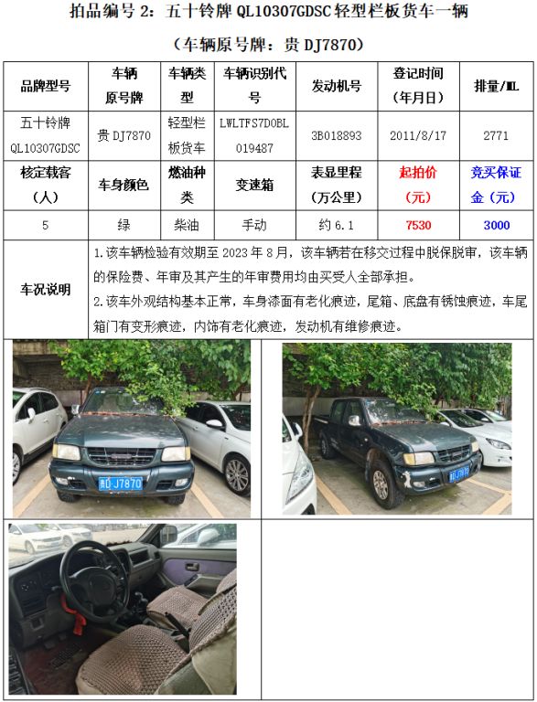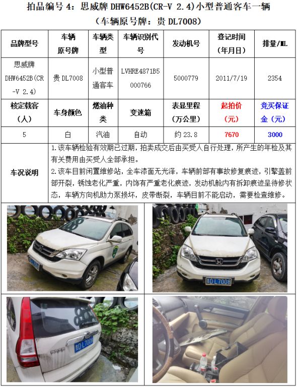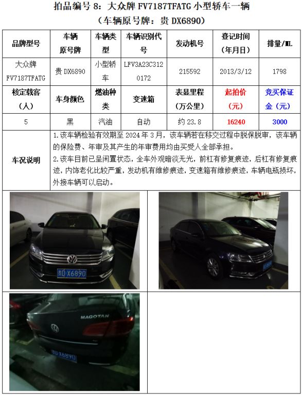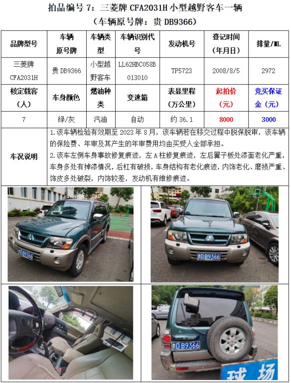 【已結(jié)束】銅仁市8輛機動車拍賣