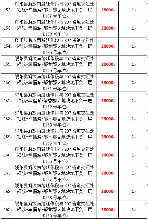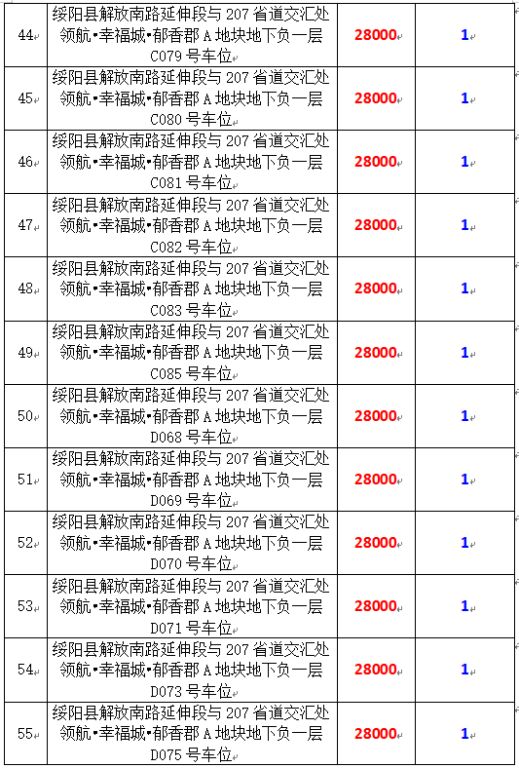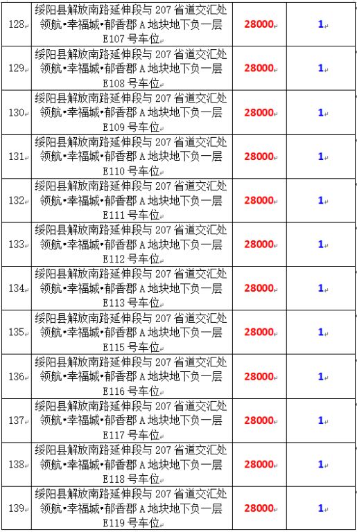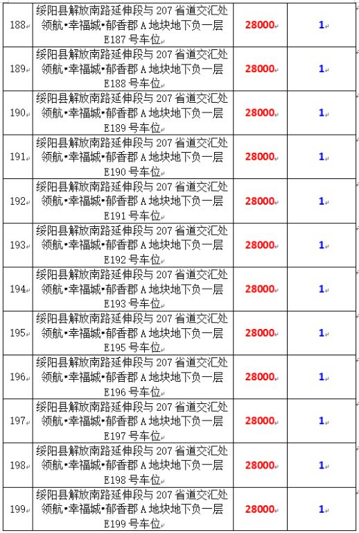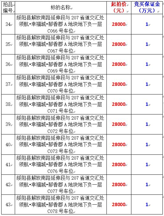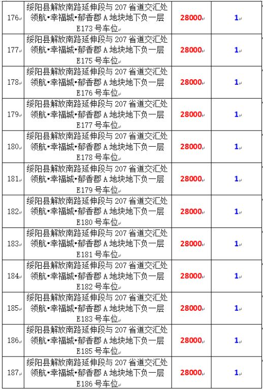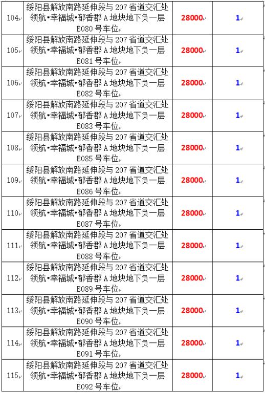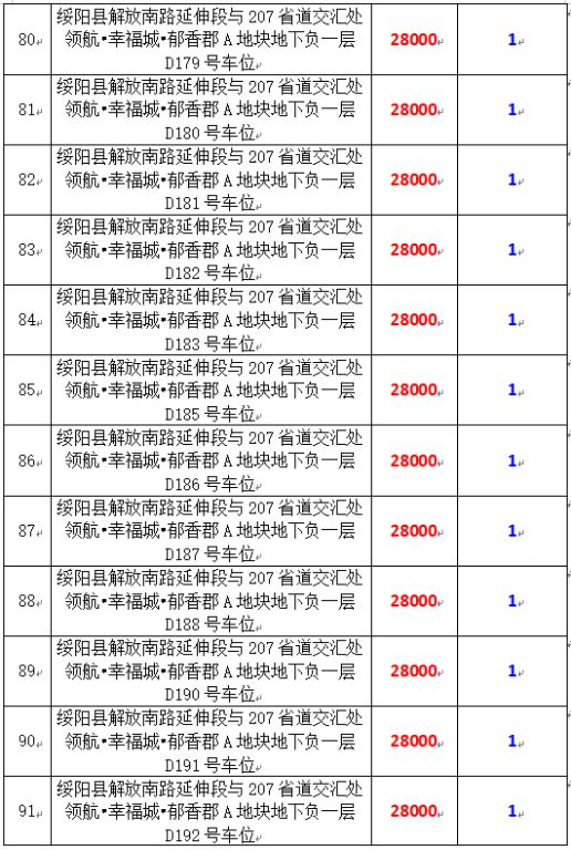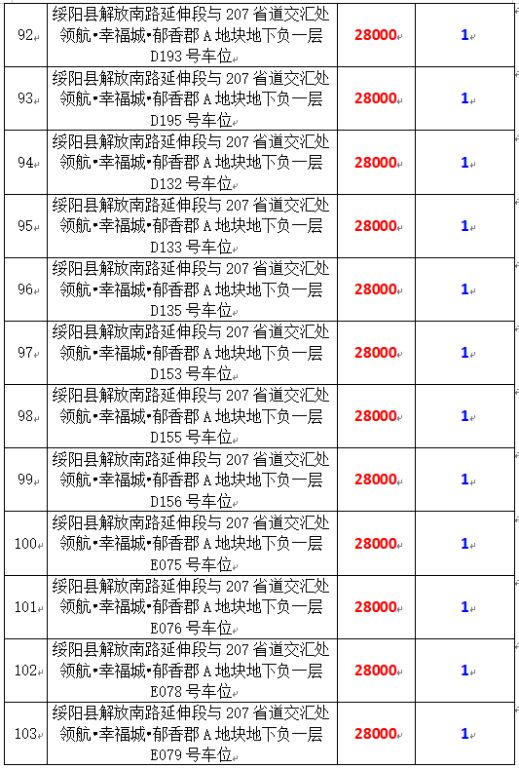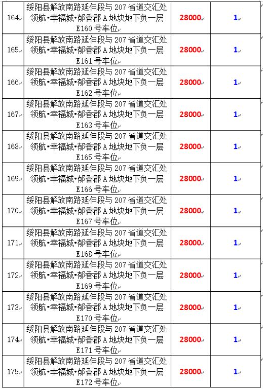 6、綏陽縣解放南路延伸段與207省道交匯處領(lǐng)航?幸福城?郁香郡A地塊地下負(fù)一層170個車位,起拍價:28000元/個,競買保證金:1萬元/個。
