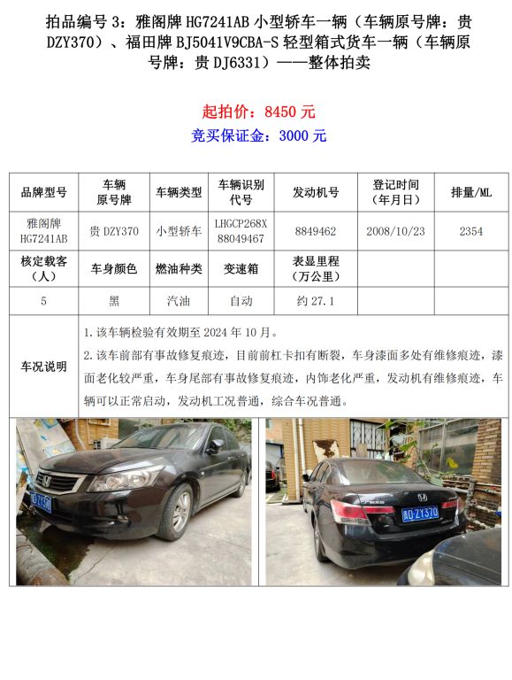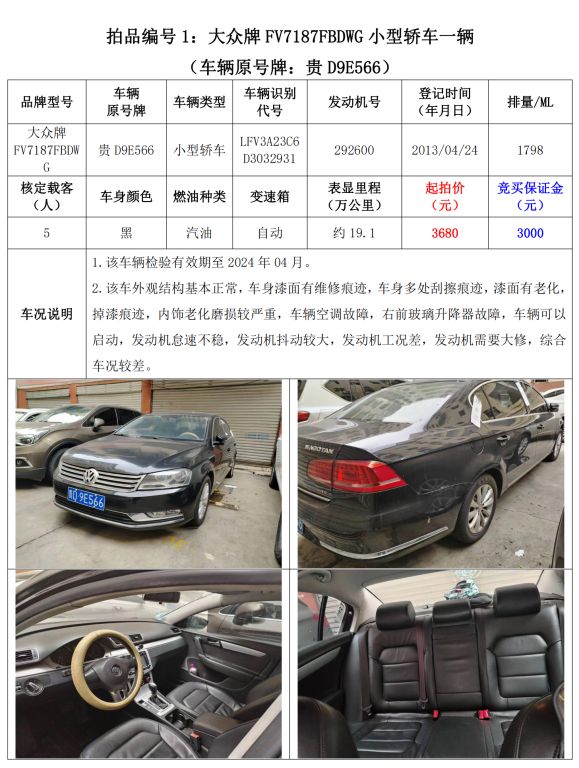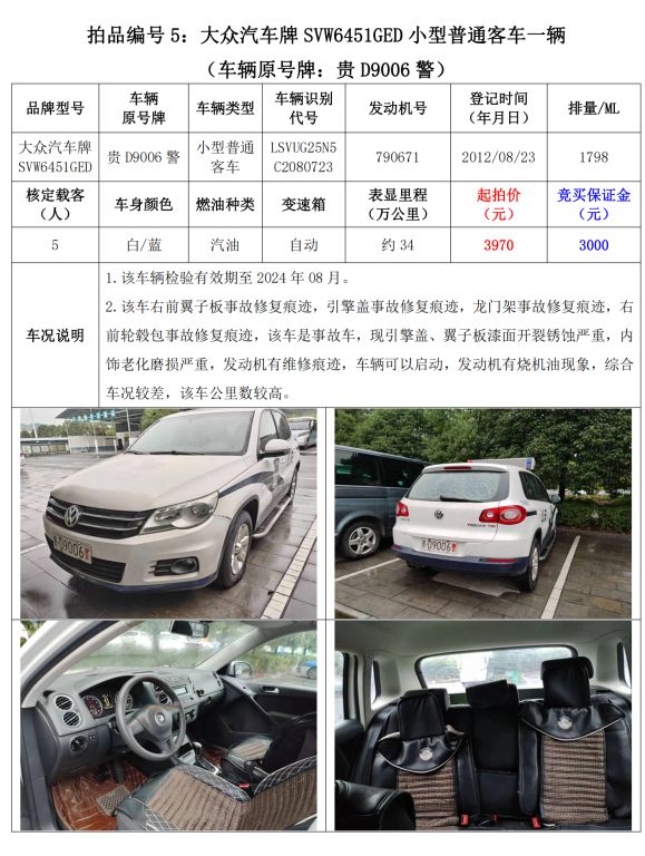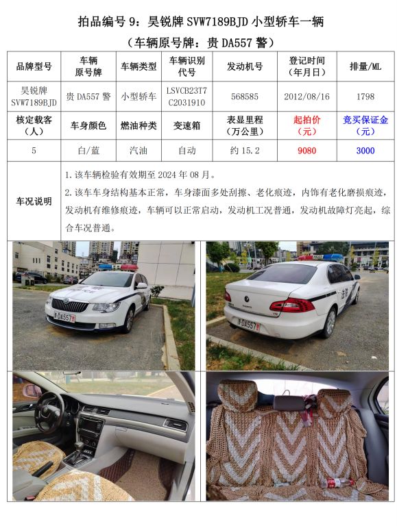 【已結(jié)束】銅仁市10輛機(jī)動車拍賣公告