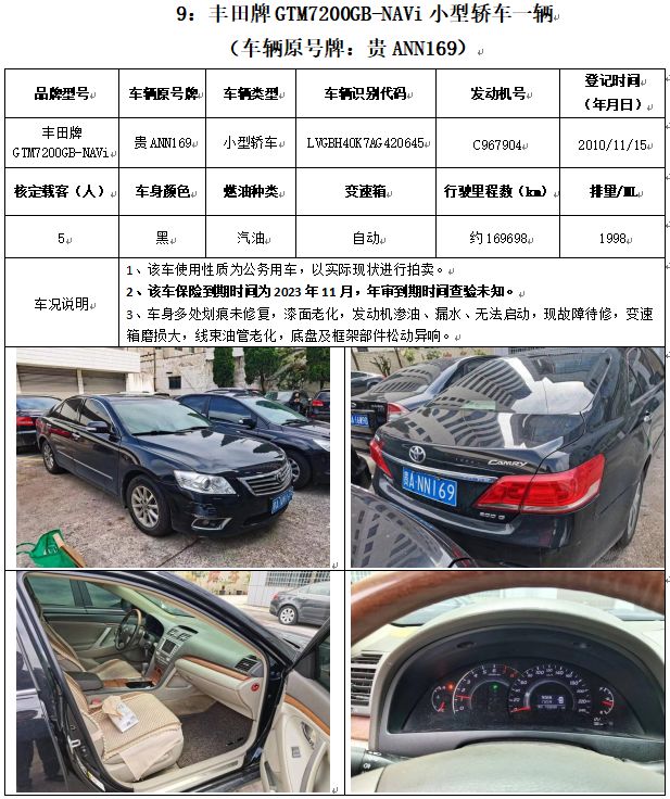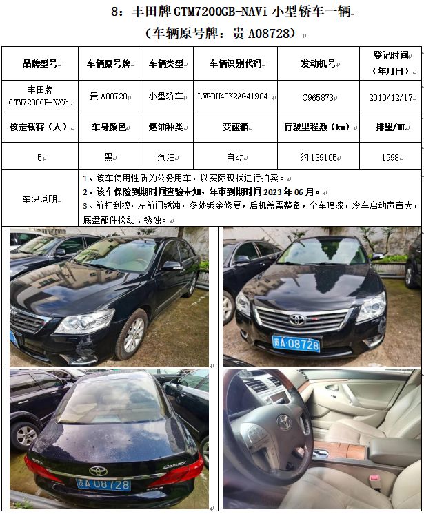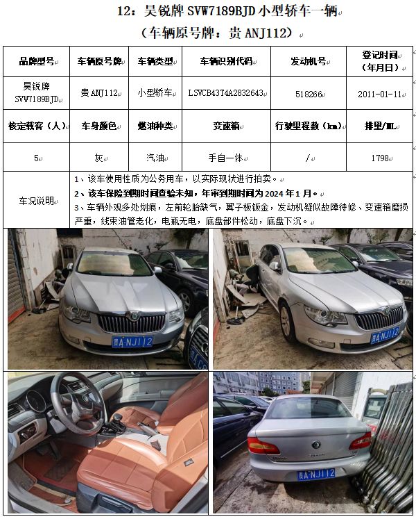 奧迪牌、菲亞特菲躍牌、豐田牌、別克牌、昊銳牌、雪佛蘭牌、??怂古频溶?chē)輛,共計(jì)14輛(整體拍賣(mài))。