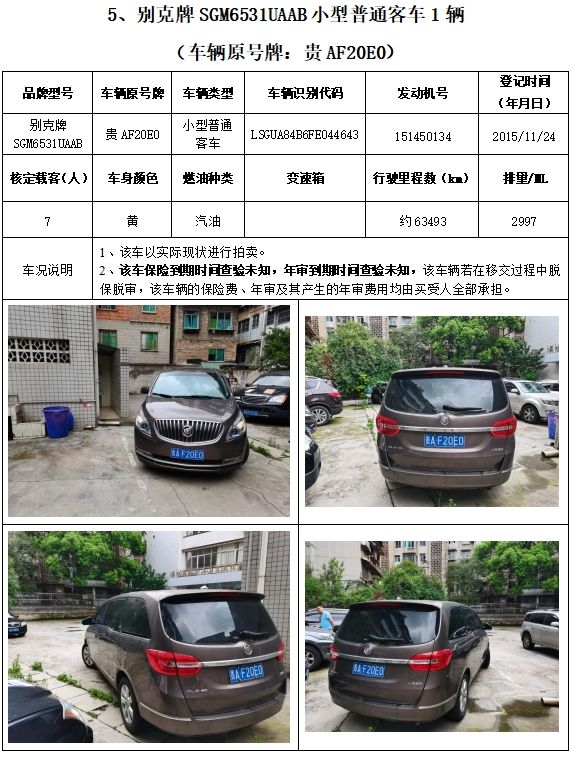 拍品編號2:榮威牌、別克牌、起亞牌、思威牌、長城牌、索蘭托牌車輛,共計6輛(整體拍賣)