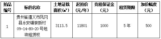【07月23日】貴州省遵義市鳳岡縣永安鎮(zhèn)崇新村崇新糧站租賃權(quán)拍賣(mài)電子競(jìng)價(jià)公告