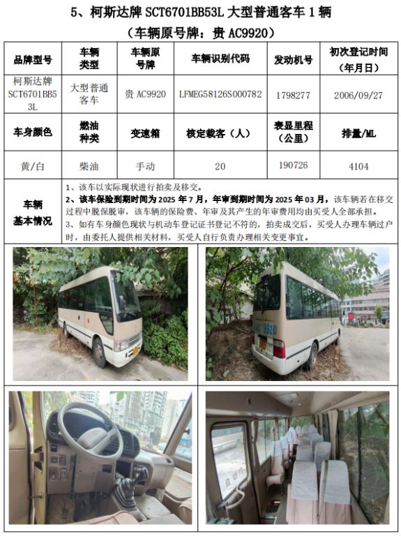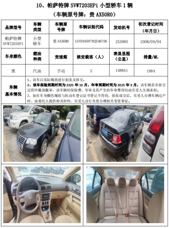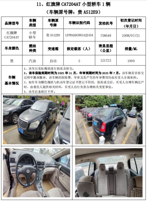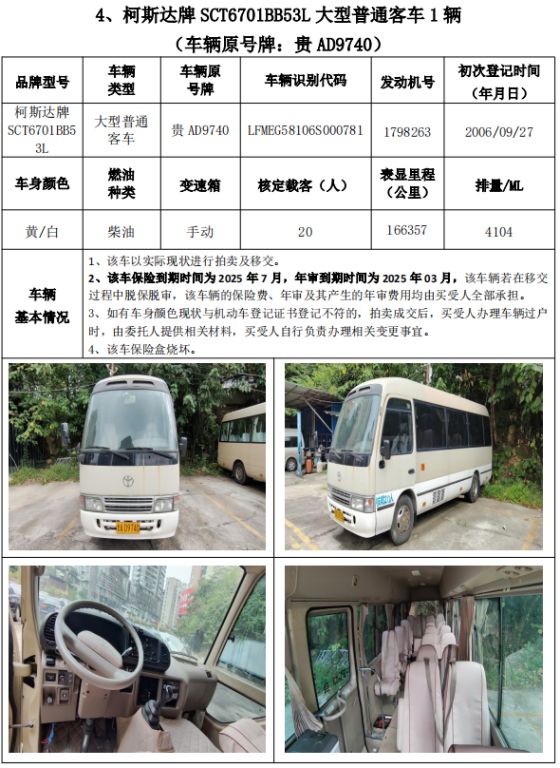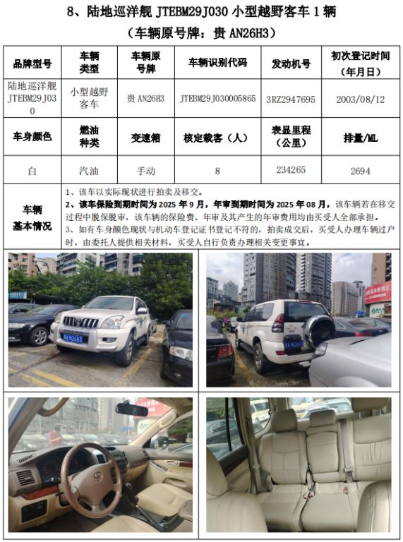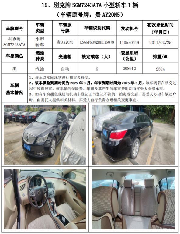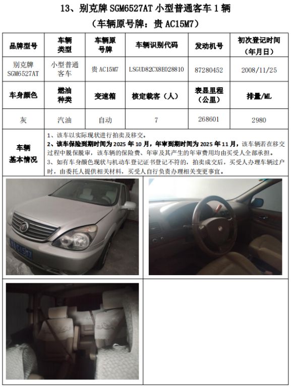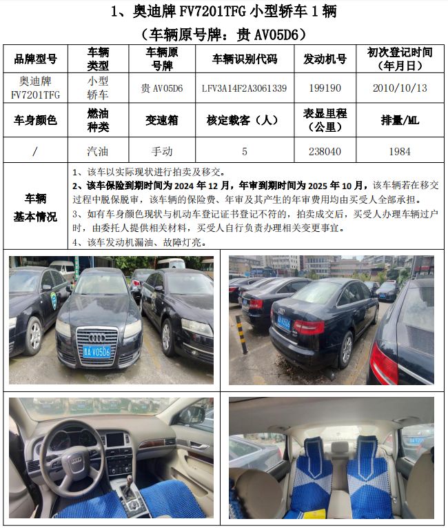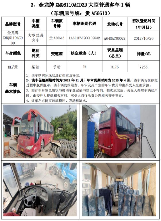 受委托,我公司定于2024年11月8日(星期五)下午14:30時(shí),在貴州省公共資源交易中心開標(biāo)室11室(貴陽市南明區(qū)遵義路)公開拍賣以下標(biāo)的: