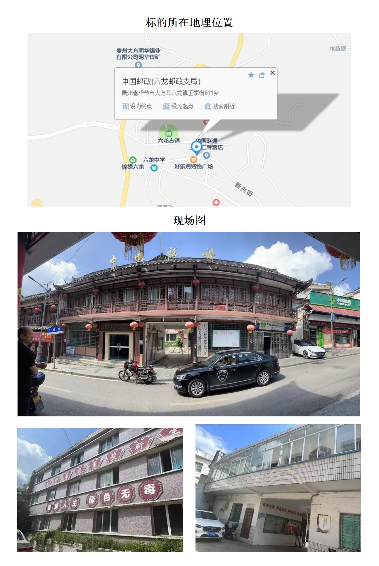 標(biāo)的位于六龍鎮(zhèn)丁字路口。建筑面積:1062.06㎡,土地面積:820.52㎡,建筑結(jié)構(gòu)為混合結(jié)構(gòu),共3棟,總層數(shù)分別為4層、2層和1層,房屋用途為住宅,土地性質(zhì)為劃撥。