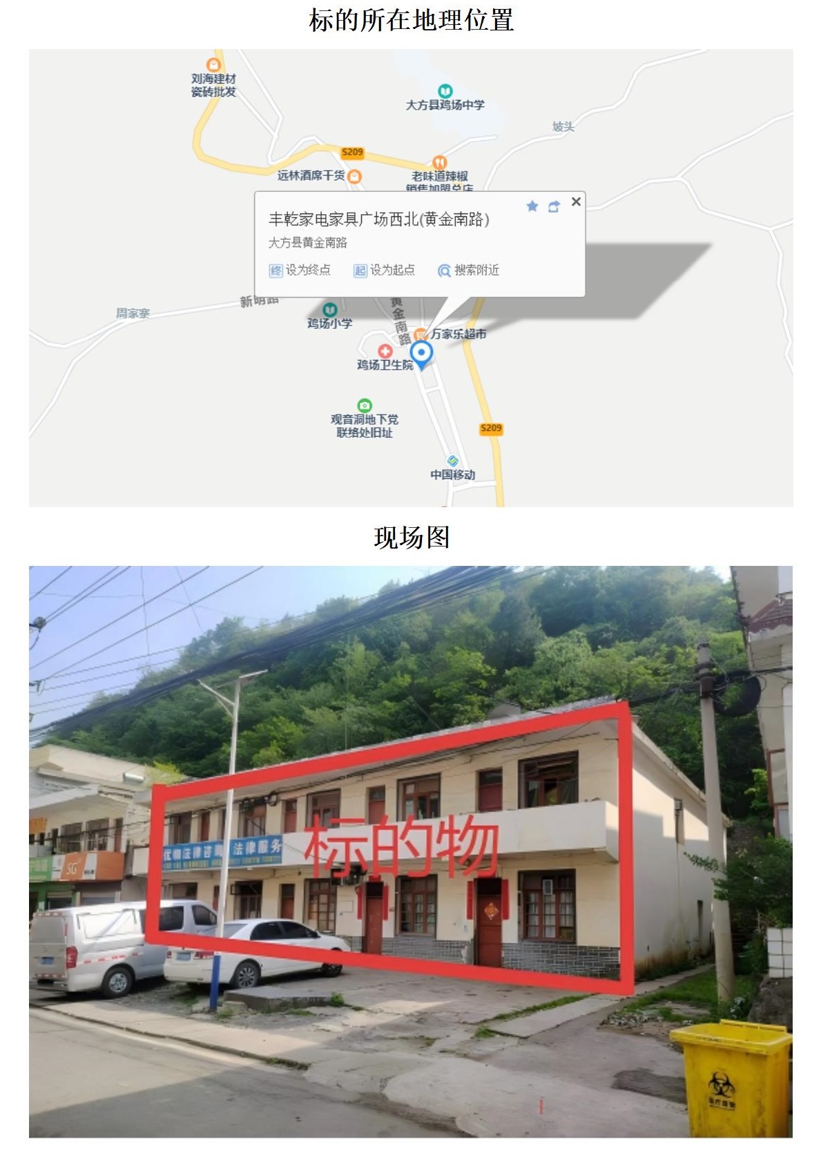 標(biāo)的位于大方縣紅旗街道辦事處新民路開(kāi)發(fā)小區(qū)核桃灣B棟5層501號(hào)和502號(hào)。建筑面積分別為:117.67㎡(501號(hào))和113.52㎡(502號(hào)),不動(dòng)產(chǎn)權(quán)證編號(hào)分別為:黔(2022)大方縣不動(dòng)產(chǎn)權(quán)第0005081號(hào)(501號(hào))和黔(2022)大方縣不動(dòng)產(chǎn)權(quán)第0005082號(hào)(502號(hào)),建筑結(jié)構(gòu)均為混合結(jié)構(gòu),權(quán)利類(lèi)型均為國(guó)有建設(shè)用地使用權(quán)/房屋所有權(quán),權(quán)利性質(zhì)均為出讓/市場(chǎng)化商品房,用途均為住宅用地/住宅。房屋總層數(shù)為6層,拍賣(mài)標(biāo)的所在層數(shù)均為5層。