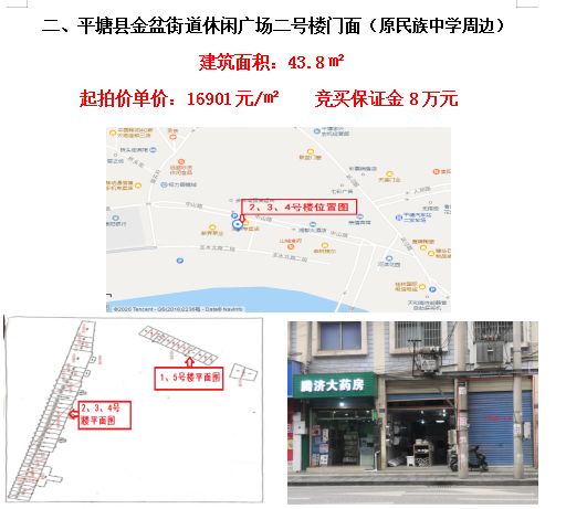 一、平塘縣金盆街道休閑廣場(chǎng)一號(hào)樓2間門面(建筑面積:156.37㎡-253.13㎡)